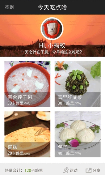“今天吃点啥”健康生活美食工具,品质生活从这里开始,爱他也要爱自己!我们为您搭配最健康的食谱,我们为您提供多种运动模式的选择,小咖告诉属于您自己的秘密,分享选择让朋友们去嫉妒迷人的你!为生活 为健康 一马当先!【软件功能】