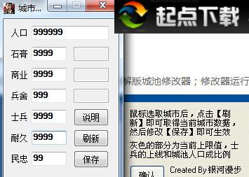 1、启动游戏后启动修改器2、点击游戏中的城池,最小化后点击修改器的刷新