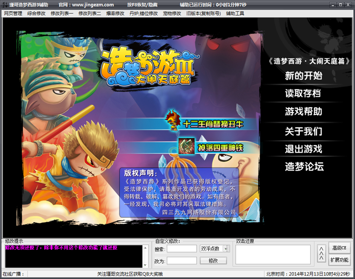 3、进入主面板,辅助有最新的消息会发到公告板上,玩家选择你要开启的游戏,包括造梦西游123,选择完成后,登陆辅助即可