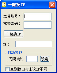 1、显示当前IP地址2、支持间隔一定时间自动更换IP3、支持直至换出不同IP4、软件自动保存宽带帐号密码 无需下次重复输入