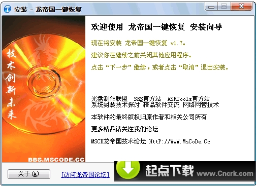 龙帝国一键恢复 V1.9 简体中文纯净安装版 本程序是基于GHOST核心的备份还原工具。支持ntfs分区读写和多硬盘备份还原系统。程序智能判断和检测备份文件。所有文件采用不被病毒感染的文件格式(包括备份映像文件),即使系统染毒,程序依然可以带毒恢复系统。智能化的设计,傻瓜式的操作,真正做到一键自动备份恢复系统