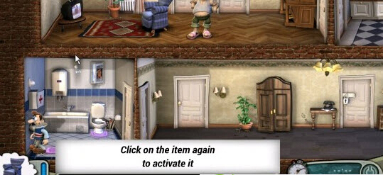 一个来自英国的整蛊游戏,非常经典,主角伍迪(Woody)是一个活力充沛的穿羊毛衫的传统英国小孩,因为邻居非常霸道,也曾经常受邻居的欺侮,便联络电视台,这是·游戏原来的面目· 故事非常有趣 靠玩家的联想 去完成道具的使用 像弹珠是撒在地上用的,生头剂倒在邻居的浴缸里,久而久之 就感觉邻居实在可怜 虽然 邻居长的非常屌 不见得他干什么坏事!