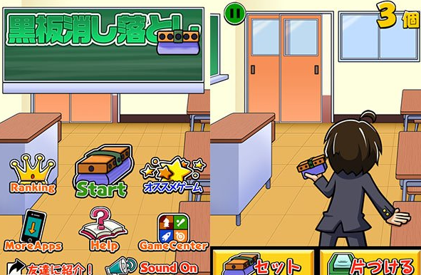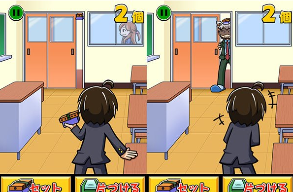 《掉落黑板擦~免费打发时间小游戏~》(黒板消し落とし ~無料暇つぶしゲーム~)是一款整人恶搞的休闲游戏,游戏中你要把一个黑板擦夹在门缝里,然后让它落在老师头上。游戏非常简单,要注意的就只是不要让黑板擦落在班花妹子的头上。这种用黑板擦来虐虐老师的想法,相信几乎每个做过学生的人都有过,现实中敢这么干的估计没几个,那么就在游戏中尽情的疼爱老师吧!喜欢的朋友赶快下载疼爱老师吧!【游戏特色】