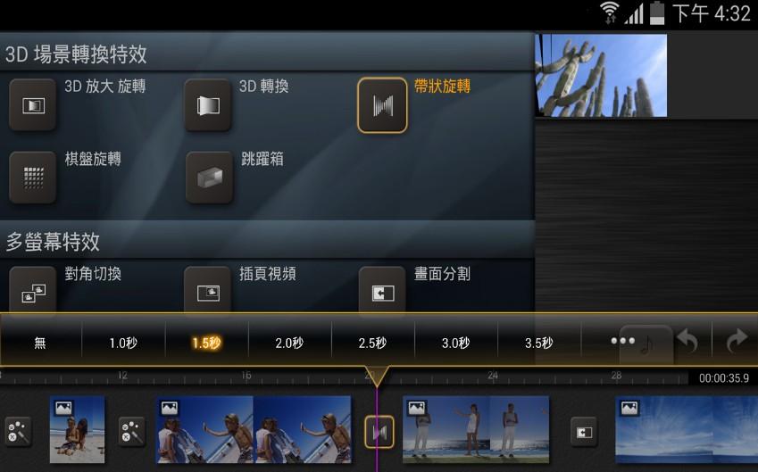 * 增加吸引目光的视觉特效,例如:3D转场、属萤幕转场、旋转视频或是镜头缩放在图像上。