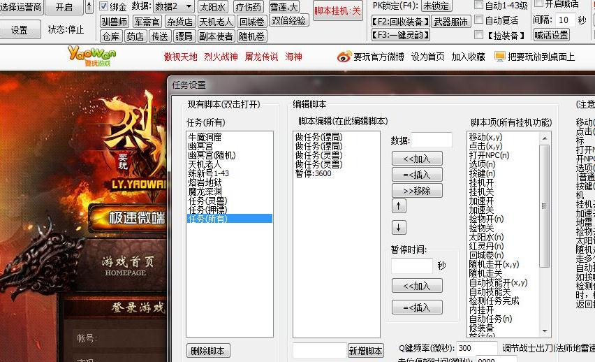 二、挂机升级用,所有丰富挂机功能都在辅助上面”脚本挂机“按钮中。整晚上无限循环挂机(不限职业),法师火墙挂机,战士2倍速度半月挂机、法师双技能挂机(2个技能)等,脚本用法相当灵活,是你玩游戏不可或缺的助手!挂机升级、打钱、回收不可少我!