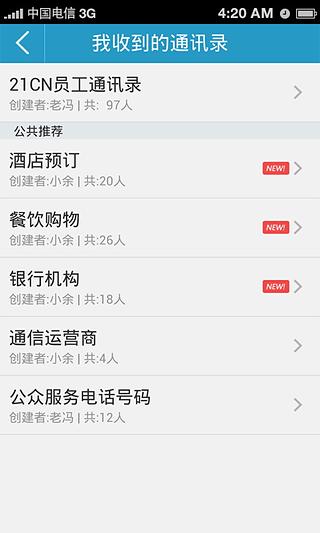 天翼电话本是一款智能手机通讯录应用,为用户提供了便捷的联系人管理、拨号以及短信聊天功能,同时用户通过天翼帐号登录,可以享受中国电信综合平台提供的各种便利服务和特权,例如挣牛币换流量,通信数据安全备份,189邮箱、天翼云空间便捷访问等。【更新日志】