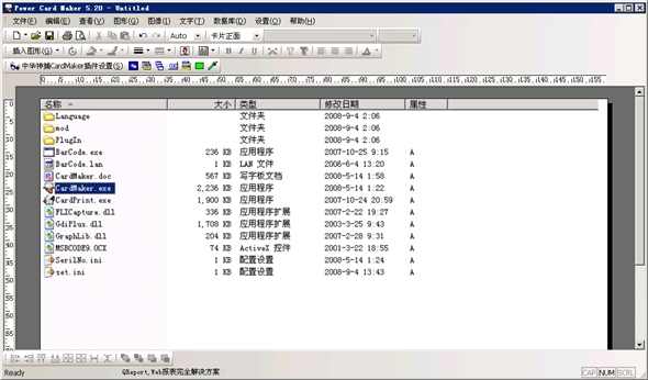专业名片、卡片、胸牌制作系统CardMaker,内置超大图形库(近百种,包括基本线条、基本形状、箭头总汇、流程图、星与旗帜、标注等)、超大图像库(近百种,包括各类背景、各类线条等,并还在不断扩充),具有强大的图形处理能力、强大的图像处理能力、强大的文字处理能力,对各类要素都提供了丰富的要素渲染方案,系统提供了完善的数据库功能,完全解决了编辑一张卡片打印不同姓名、不同职位、不同...的任意多张卡片这一卡片系统业的长期困扰。使用本系统你可以打印名片、各类卡片、各类胸牌、餐票,可以一次性打印出你单位所有人的出入证、胸牌而不需你再手工添上他们的姓名、职位,可以一次性打印出给你所有朋友或客户的信封标贴,可以打印出超级专业、优美无比的各类名片