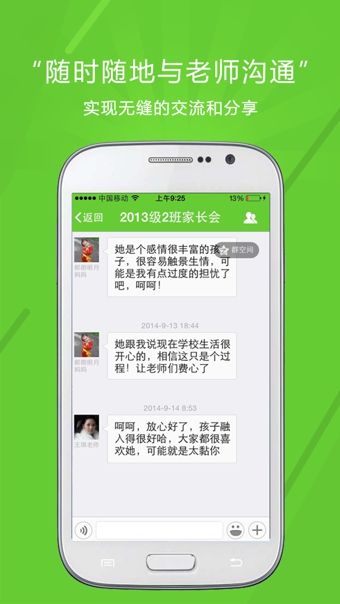 家长会 - 通过文字、语音、图片等形式,随时随地,与老师实现无缝的交流和分享;不花一分钱,省时高效;