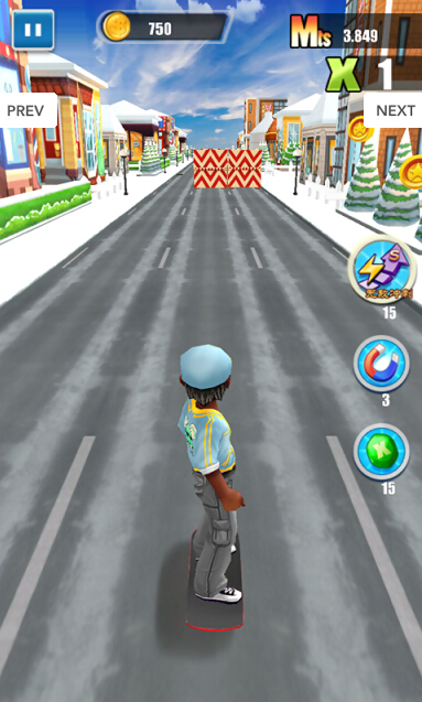极速滑板是一款跑酷类休闲动作游戏。玩家控制角色快速的往前滑动,跳过障碍物,遇到斜坡后会冲到空中,空中旋转人物会增加角色无敌时间,很惊险哦,记得多收集路边的金币和道具,能否安全的渡过一道一道难关呢?快来挑战一下吧!【游戏特点】