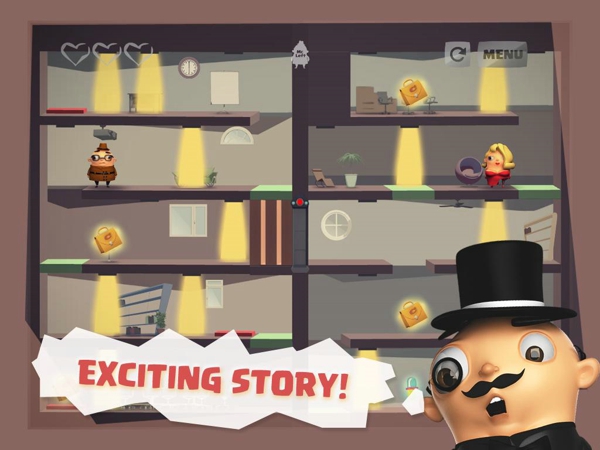 本作的构图风格诙谐幽默,欧美风浓郁的 Q 版人物其身形粗犷又不乏细腻,整个视觉效果非常讨喜。仔细打量房间的每个角落你会发现一些比较奇特的地方,比如升降台、闸门什么的,显然这并不是一般人能够来的地方,侦探此行似乎是要夺回一些机密文件。