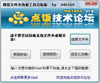 一个小巧的文件夹伪装工具,您可以随心所欲伪装文件夹成您喜欢的样式,比如:回收站.伪装后的文件夹增加了防止误删除的功能
