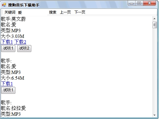 数据来自搜狗 需要.net2.0 支持 更新 加入在线试听功能