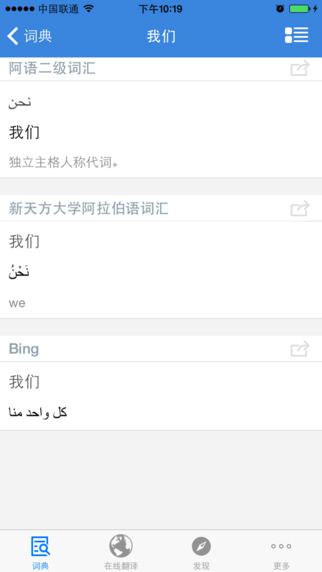 5.8万多词条不联网也可以查询,贴心为您节省流量。支持阿汉、汉阿、阿英、英阿词典,内容由权威学者审校,我们的内容要比其它软件更专业、更详尽、更可靠;