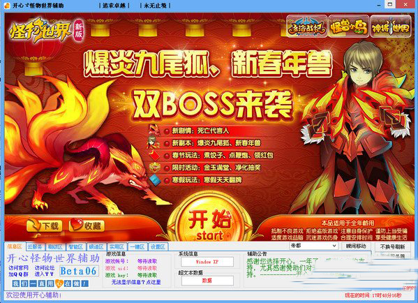 怪物世界辅助器-开心怪物世界辅助Beta12正式发布了,还在为没有VIP挂机而去充值吗?还在一点一点手动打怪吗?有了开心辅助,这些都不是问题。开心怪物世界辅助可以帮助玩家自动挂机、自动做任务,最大程度的降低游戏难度,让你在游戏中玩得更轻松。怪物世界是一款以狩猎怪物、魔幻冒险为题材的角色扮演网页游戏。玩家将化身怪物猎人,狩猎各种怪物,收集材料锻造装备,与邪龙率领的怪物大军作战。