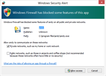 第一步:下载安装Andy(测试系统为Windows 8),没有什么困难的地方,注意通过Windows的防火墙即可。通过Windows防火墙第二步:大约一分钟后,需要进行“引导”操作,你会看到一个Android欢迎界面,就像你刚刚启动一款全新的Android平板那样(目前Andy运行的Android版本为4.2)。你可以使用鼠标或是触摸屏(笔记本支持的话)来进行下一步操作。Android欢迎界面