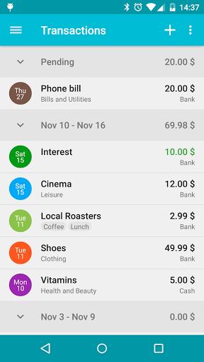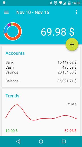 Financius是一款精致的手机记账软件,完全遵照 Android 4.0 设计规范开发,赏心悦目。应用支持多个金融账户的管理,在记录时可切换账户。交易记录提供三种模式:收入、支出,以及本地账户之间的转账。【软件特点】