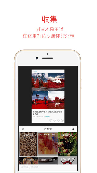 看到喜欢的内容吗?立刻点 + 键收集起来,打造属于您自己的杂志!从 “吃货的小本本” 到 “极客范”,随心所欲打造不同主题的杂志。点红丝带进入目录中的 “杂志精选” 来发掘更多其他读者打造的精彩杂志。