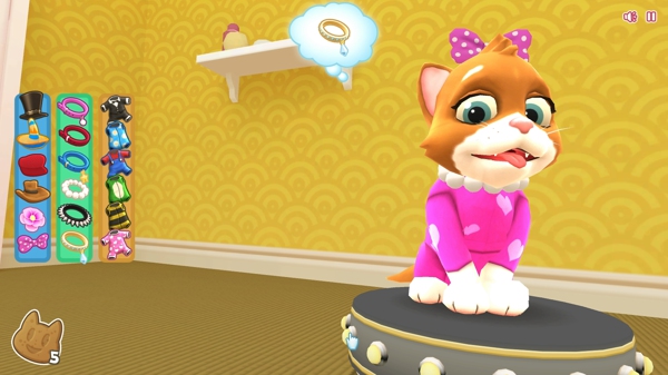 《猫咪凯蒂 Kitty Cats》是一款画面非常可爱的休闲游戏。首先,挑选一只你最喜欢的猫咪,你可以喂它喝水或者吃猫粮,也可以在多种多样的装扮服饰中选一套你最喜欢的给它穿上,还可以陪它一起看电视、抓老鼠、咬鞋子或者玩玩具。它会忠心地陪伴着你,直到永远!