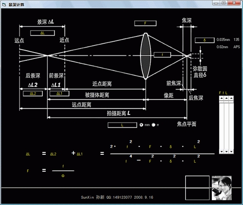 通过光圈系数, 物距,和允许弥散圆直径,计算景深 有原理图