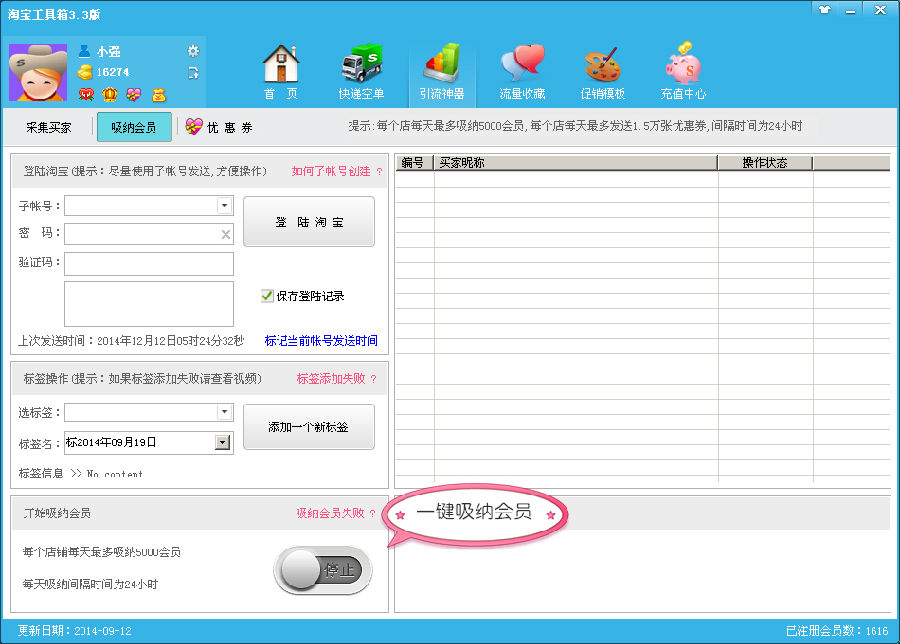 吸纳永久会员,一键发送优惠券