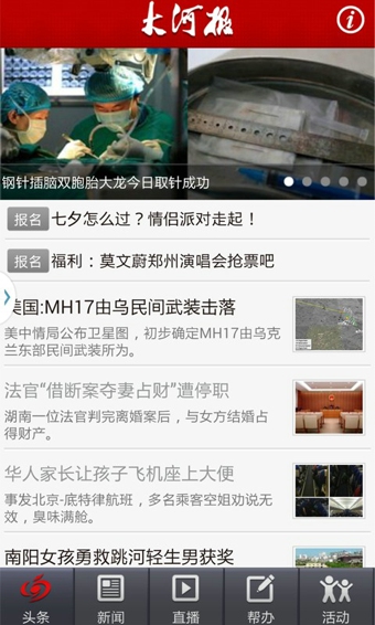 大河报客户端是中原地区影响力最大、用户量最多、最具权威性的移动新媒体,它是集新闻资讯与生活服务信息于一体的智能手机应用。大河报客户端依托河南日报报业集团、大河报庞大的新闻采编队伍和丰富的社会资源,立足河南辐射全国,正向媒体平台化、功能矩阵化发展。【 更新日志】