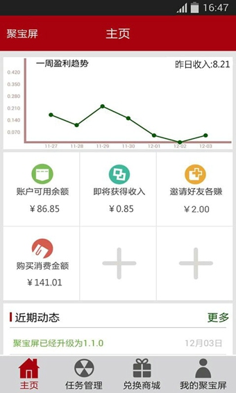 全球最火爆的赚钱锁屏,赚钱更高调;锁屏更优美;提现更便捷;内容更丰富,手机锁屏就用聚宝屏。聚宝屏是一款锁屏桌面美化应用,它能替代淡然无味普通解锁,装上它,让你的手机立刻变得生动起来,使每一次滑动都变得有趣,让人百看不厌,爱不释手。