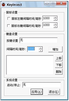 一个可以自动按动鼠标和键盘的东东.适合于周期的按动鼠标和键盘的用户使用。 使用方法: 设置好各项按键后,按设置的启动热键开始工作,再次按启动热键停止工作,如此反复。