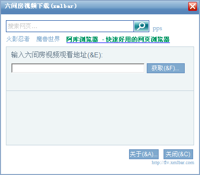 六间房视频下载 V3.2 简体中文绿色免费版 六间房视频下载(xmlbar)是一个专门用于下载六间房视频到本机硬盘上的小软件。它不但完全免费而且干净不含有任何插件,可以完全干净卸载。用户只需输入需要下载的六间房视频的观看页面地址并按下下载按钮,它就会自动识别后进行下载,下载的文件格式为flv。更好的是它还支持多个六间房视频文件同时下载,并能显示出真实的六间房视频文件的下载地址,下载完后您还可以选择马上播放