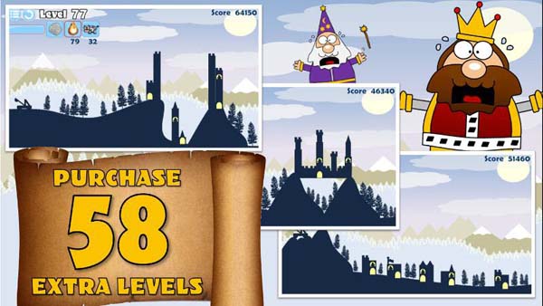简洁清新的游戏画面,丰富的国王表情;丰富的游戏关卡,越来越坚固的城堡等你攻破;