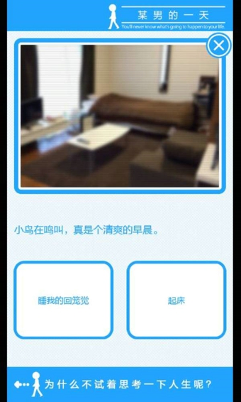 某男的一天下载是一款休闲的小游戏。该游戏玩法非常简单,玩家只需要帮助游戏中的男主人公作出选择,但是有可能你的选择会导致它一步步接近死亡,所以在进行选择的时候要三思熟虑。