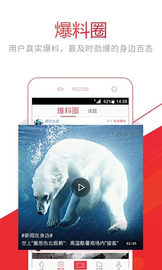 视频头条是原快播团队最新开发的一款网络热门视频播放应用,以短视频为主,主打头条资讯。涵盖性感美女、社会新闻、娱乐八卦、奇趣搞笑、最新科技等领域;承继成熟的搜索技术,聚合优酷、土豆等多家视频资源;应用巧妙的推荐技术,智能分析你的兴趣爱好,精准推荐;更贴心提供Wifi离线下载,免流量观看,无缝连接家到公司的时间,是必备的口袋资讯产品。【软件特点】