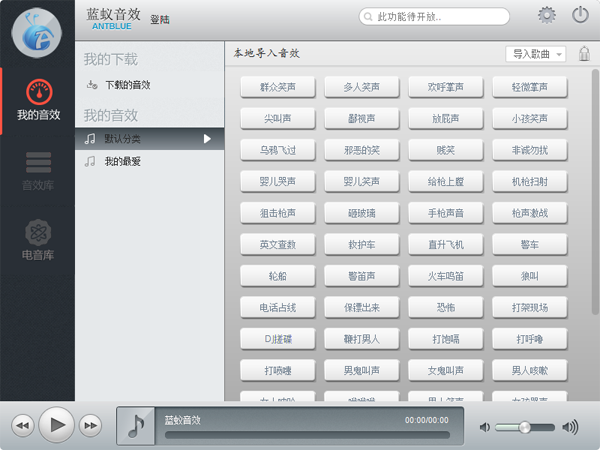 蓝蚁音效是一款全新的音效播放器,提供各种音效效果在线试听下载。海量的音效,支持3D音效, 简洁人性化的操作,给追求音乐品质的人带来了全新体验。软件能自动识别声电脑硬件声音输出通道,实现多通道音频输出,能将系统声音及音频声音分离。该软件主要适用于YY聊天室、9158、新浪uc、IS语音、QT语音聊天室及VV、呱呱等语音视频聊天室使用。【软件特点】