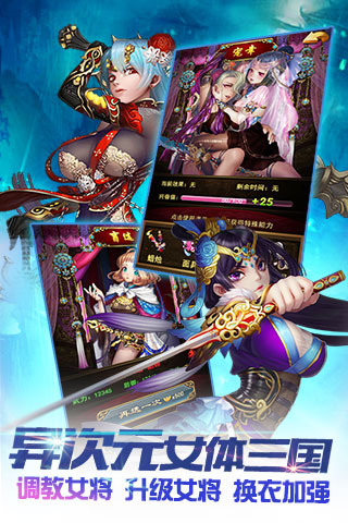 三国撸啊撸是一款年度最佳三国策略卡牌手游大作,全新三国女神,异次元女体三国,调教女将,升级女将,换衣加强!带妹子去战斗,即时战略,美女召唤,单挑群殴!地图定位主城,真实位置,GPS跟踪,新奇玩法!有着超乎想象的颠覆式将领形象,萝莉袁绍、御姐孙权、女王曹操,各路英雄皆绝色,浓妆淡抹总相宜。