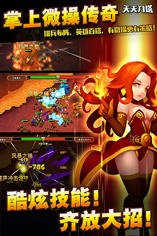 《天天刀塔》是以刀塔魔幻题材为背景的Q版策略战争手机游戏。玩家在游戏将中守护着自己的阵营,建设自己的城堡,与刀塔里的英雄们一起对抗黑暗势力。结合远古的魔幻历史背景,酷炫的战斗元素,多元化的英雄搭配,即时操控的战场策略,为玩家们打造出一个宏伟的史诗级战争。