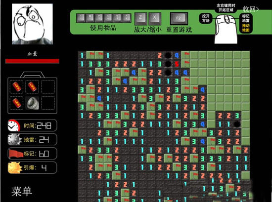 扫雷是一款经典的电脑小游戏,原版的扫雷玩法比较的单一,为了增加一些RPG的元素,就有网友制作了扫雷RPG版本,难度在标题画面上可以调整,分数会随难度加大而指数上升。解压说明:游戏文件请放在全英文目录下。