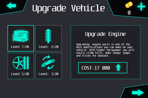 - 许多不同的车辆具有独特的升级(很多不同的车辆:月亮路虎,坦克,越野车,苏联太空车等)- 升级的部件包括发动机,悬架,轮胎和空中控制