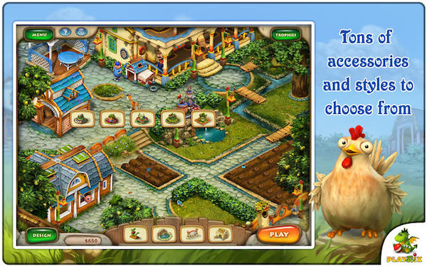 【4】创 意:本作是“Playrix Entertainment”继《园艺别墅》后带来的全新同类作品。游戏在形式上有所变化,以互动的机关谜题为主线,结合了经典的交换消除游戏规则。赚取足够的金币后,你还可以购买多样化的园艺装饰来美化你的农场,使游戏更具趣味性!