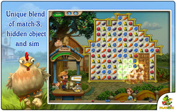 【5】可玩性:根据时间限制选择2种不同的模式开始你的游戏。《Farmscapes Collector's Edition》中包括了30个消除关卡,幽默诙谐的剧情对话,以及巧妙的机关谜题。完成游戏后还有漂亮的屏保和壁纸,原声配乐可以收集。