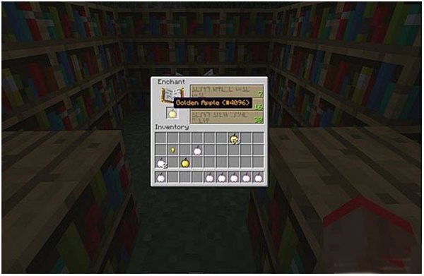 注意,原版金苹果(8个金粒合成的)不能附魔想附魔,必须要用这个新的金苹果(8个金锭合成的)