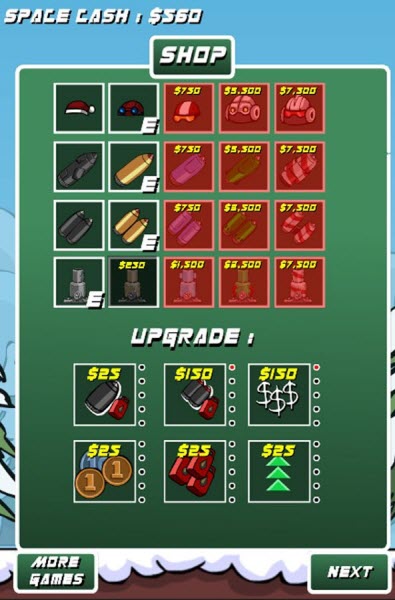 搞笑的圣诞老人造型,动感的游戏音效;丰富的游戏道具,帮助你飞的更高;