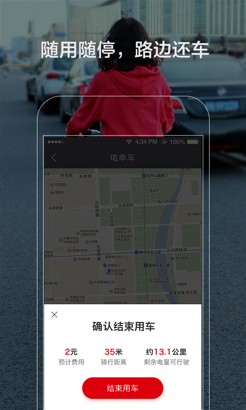 更便利-手机扫码开锁,无固定车桩,路边白线内还车,方便省心;