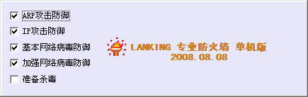 1)本程序为防病毒专业防火墙(正式NDIS IM层驱动)单机版, 无须安装, 支持windows 2000/xp/2003, 直接解压运行LanKing.exe一次即可, 以后不用手工运行,