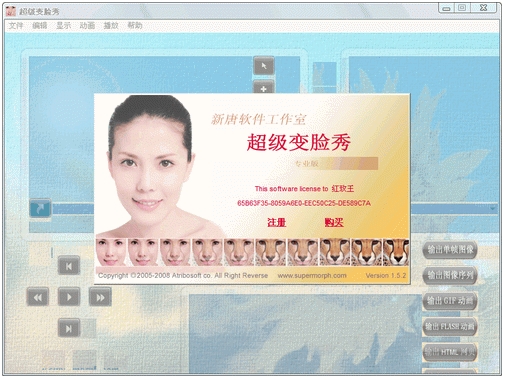 超级变脸秀 V1.5.5 简体中文绿色特别版 超级变脸秀(SuperMorph)是一款用于实时创建变形特效影片的软件. 由于采用了全新高速渲染引擎, 普通用户都能轻松快捷地创作出这种在影视作品中大量采用的专业视觉特效, 带给你无穷的乐趣, 通过标准的AVI, GIF, Flash等格式又能方便地与亲友分享...快来亲身体验这奇幻的感觉吧