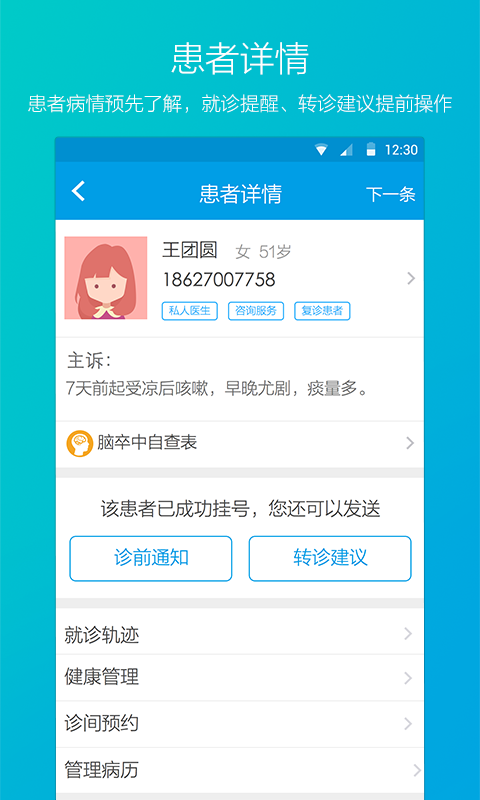 #私人医生#便捷管理患者,更可选择为患者提供私人医生付费增值服务,制定随访方案,充分提升个人品牌收益;