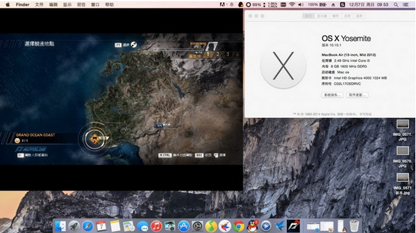 小编亲测 MacBook Air 11寸 10.10.1 系统可以完美运行,繁体中文字幕,英语解说,就是小本本不适合玩游戏,玩不了一会就有些发热,同时屏幕也有点小。所以小编建议还是用15的Pro玩肯定很爽,另外 Mini 盒子加个显示器的话也不错。操作方法,方向键左右控制拐弯方向,A 加速,Z 刹车,然后还有个氮气加速键,但是小编试了半天没找着是哪个键,大家自己摸索。