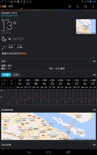 - 每小时一次的预报,包括日出和日落