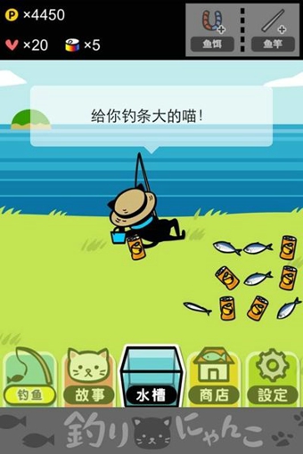 钓鱼猫咪汉化版是一款原本的日本游戏,王子、人鱼、猫咪以及外星人的组合,这个组合的一个特点就是大家都需要鱼,你钓到鱼然后送给他们,似乎会的到他们送的很多礼物哦,他们很大方的。