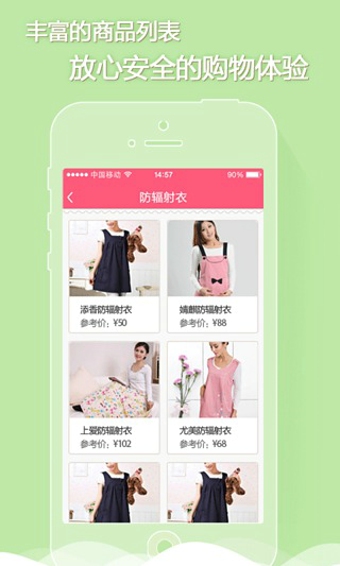3、提供完整的孕期必备物品清单,为宝妈们推荐非常时尚且实用的孕妇装,防辐射服,产妇瘦身塑体,护肤等经常用到的装饰类商品,可根据需要购买商品、记录已准备的物品。精选优质商品,全网超低价格,顺畅的购物流程,满意的服务体验。妈妈们看紧你的钱包哦O(∩_∩)O~