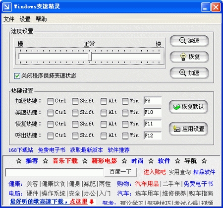 Windows变速精灵 V1.5 简体中文绿色免费版 一款能调节Windows系统速度以及应用软件(包括各种游戏软件)运行速度的神奇软件,它能支持目前所有的Windows操作系统,能够非常稳定地在操作系统底层发挥作用,甚至可以在软件退出后依然发挥变速功能,从而最大程度地节省了系统资源