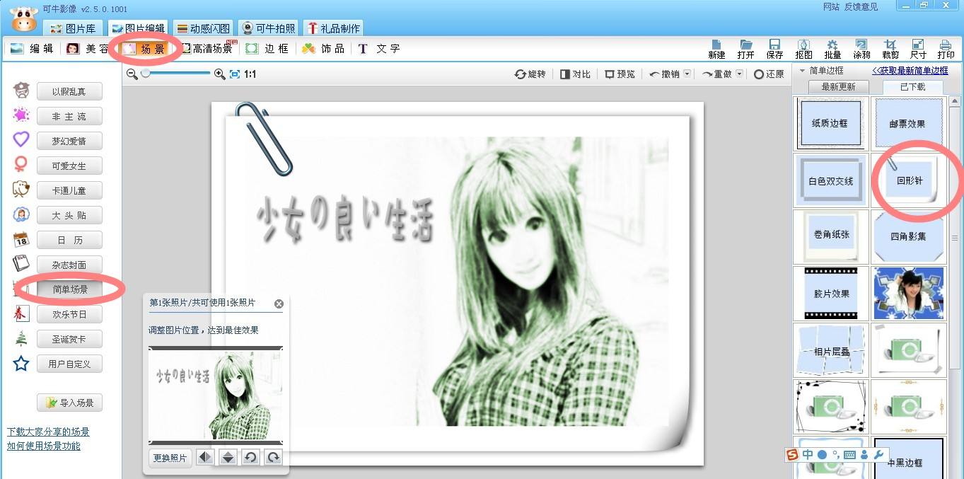 可牛影像内嵌上千张日历、宝宝照、婚纱照、非主流场景无须任何PS技巧识即可轻松制作。